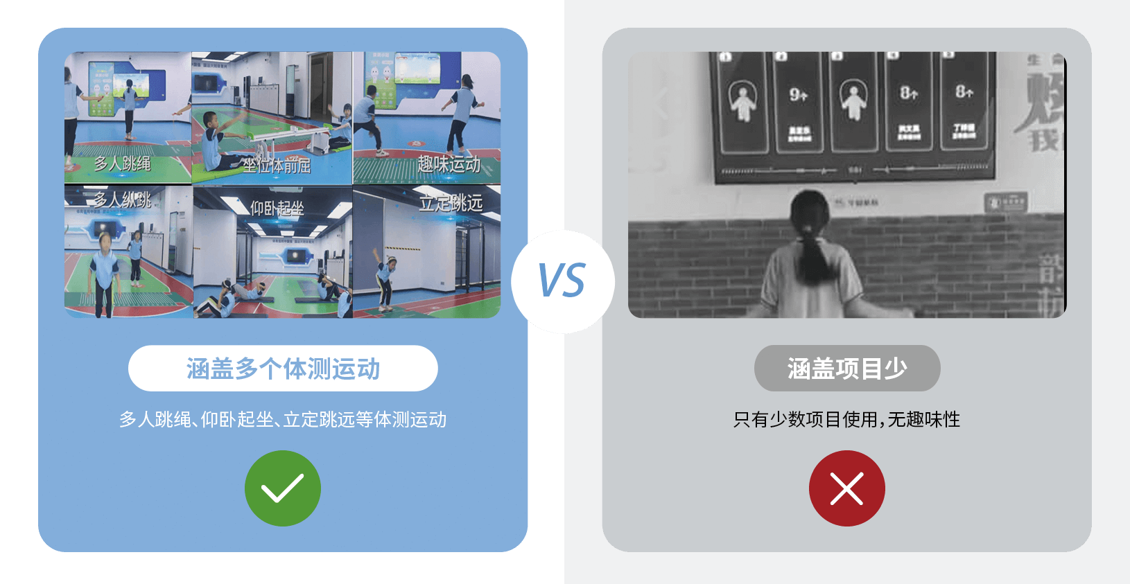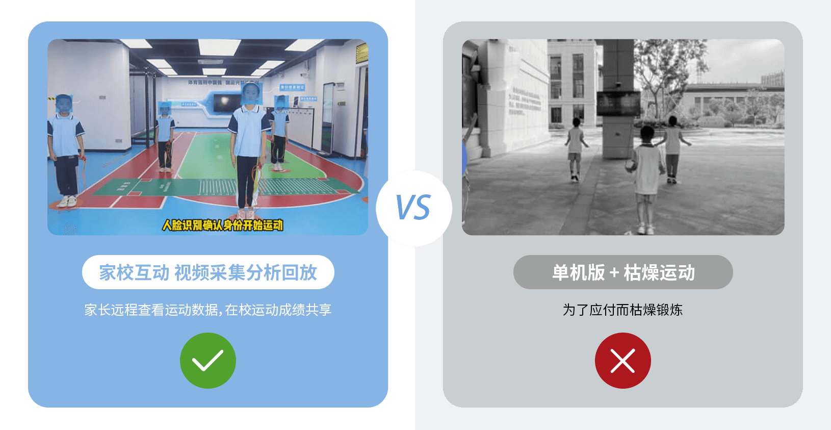 结合高集成摄像头及显示大屏产品形态,在学校固定锻炼场所部署,实现自动标定测试区域,开机即用。